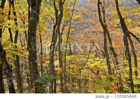紅葉する塩原渓谷の回顧(みかえり)の吊橋への遊歩道