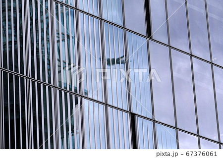 日本の東京都市景観 渋谷スクランブルスクエアの窓ガラスに映る航空機