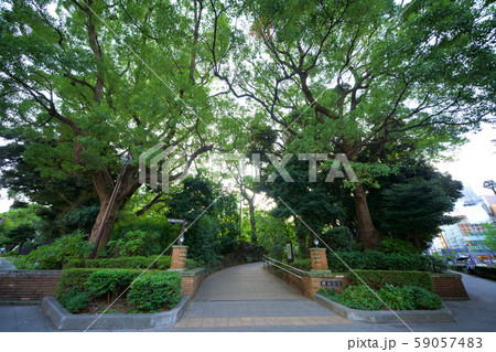 日本の横浜都市景観 港の見える丘公園前を望む(奥は港の見える丘公園)