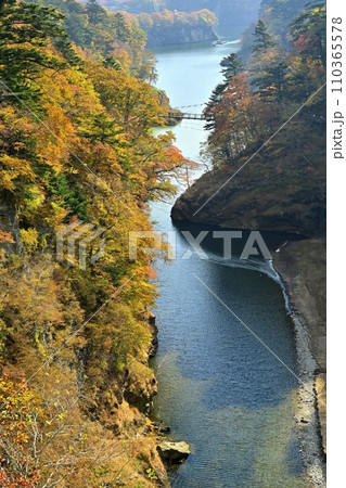 紅葉の塩原渓谷に箒川(塩原ダム湖)