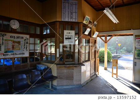 JR因美線にある美作滝尾駅の木造駅舎で無人駅だが木製の改札口が設置されている