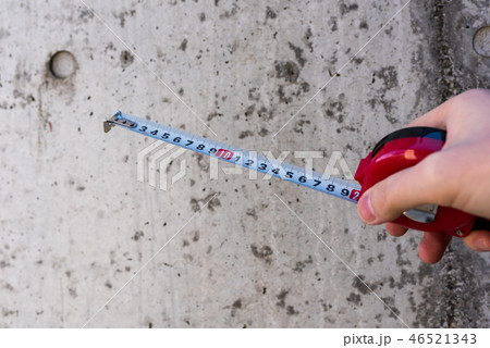 メジャーを持つ男性の手