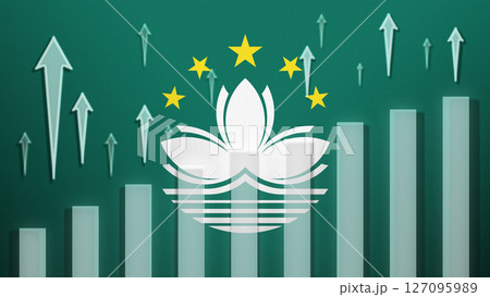 Flag with rising bar chart and up arrows