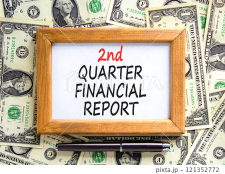 2nd quarter financial report symbol. Concept words 2nd quarter financial report on beautiful wooden frame. Beautiful dollar background. Business 2nd quarter financial report concept. Copy space.