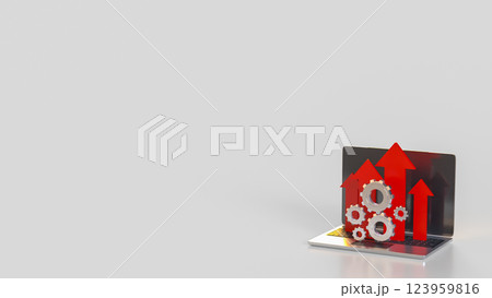 The Arrow and Gear on Notebook for Business concept 3d Rendering.