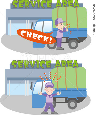 交通安全<トラックドライバー・サービスエリアでの荷物の固縛チェックと休憩>