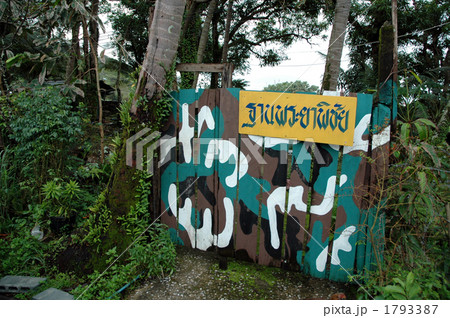 民家の裏庭にある木製のドアがタイ<-->カンボジアの国境
