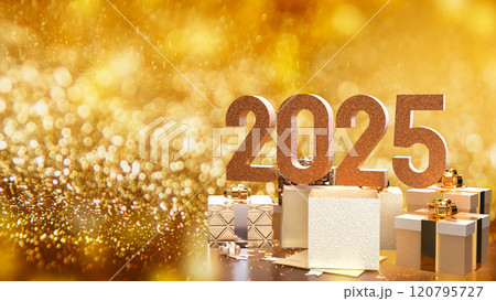 The Number 2025 and gift box for celebration or holiday concept 3d rendering.