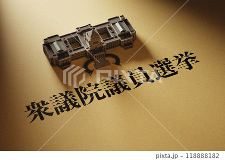 スポットライトに照らされた「衆議院議員選挙」のタイトルイメージ / 3Dレンダリング
