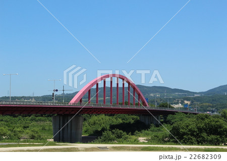 京都府の木津川にかかるゲルバートラス構造の泉大橋