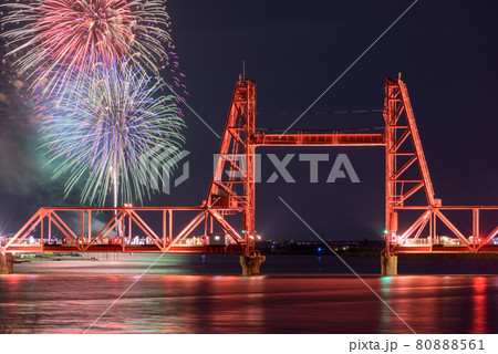 筑後川昇開橋と花火