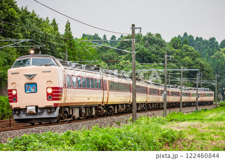 北陸本線を行く特急雷鳥号:485系200番台先頭