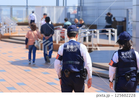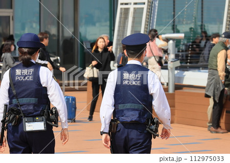 空港を巡回する警察官 後ろ姿 警備 警視庁