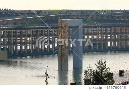 大阪・関西万博の夕方の大屋根リング(大阪府大阪市此花区)