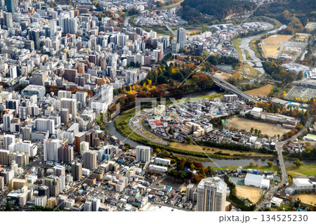 杜の都 仙台 広瀬川 秋 大橋から上流の地下鉄東西線を望む