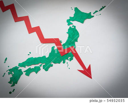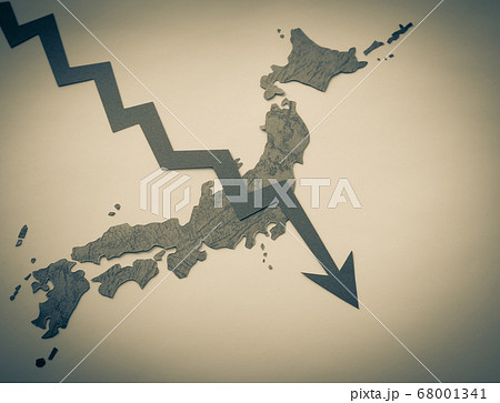 矢印 日本地図 地図 矢印 下向き 社会問題 人口減少 少子化