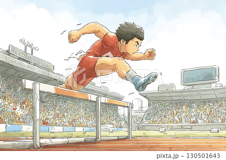 美優シリーズ:ハードル走でジャンプする選手 女性
