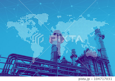 Power plant petroleum gas oil chemical factory overlay world map for worldwide business industry logistics concept.