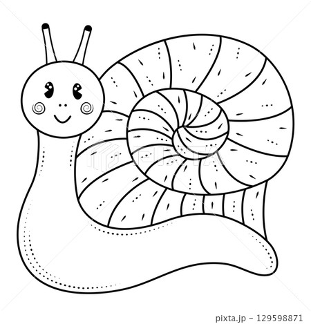 Cute and happy snail, vector black and white illustration