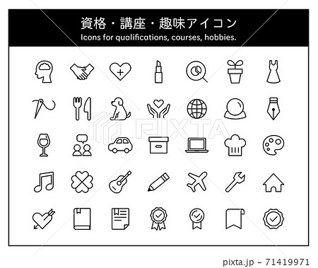 色々な資格のアイコンのセット/ビジネススキル/講座/教室/趣味/勉強/事務/介護・福祉/美容/学習