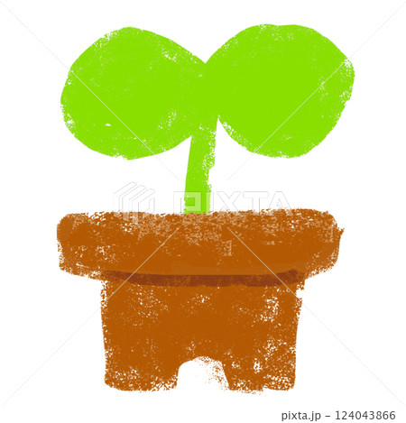 シンプルイラスト クレヨンタッチ 植木鉢とふたばの新芽