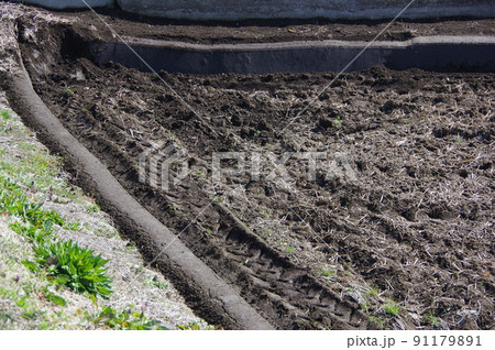 春、植え付け前の畑、広い農地、土