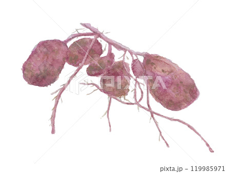 水彩で描いた掘り出したばかりのサツマイモ【手描き】白バック 透過背景