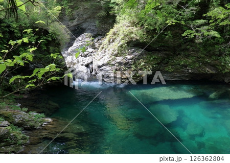 瀬戸川渓谷 エメラルドグリーンの水面(高知県)