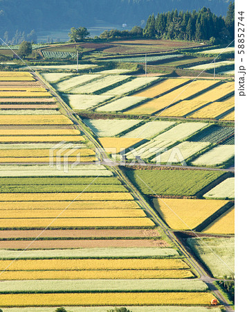 新潟県小千谷市池ケ原 実りの秋を迎えた、魚沼産コシヒカリの田んぼとソバ畑
