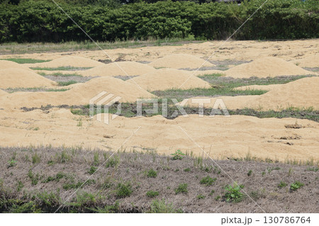 畑に撒かれたもみ殻