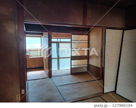 昭和型板ガラスのガラス戸と古い畳や土壁が残る昭和の家の間取り