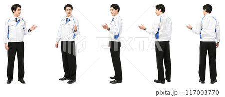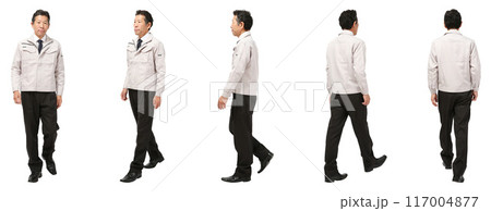 工場・建設勤務の作業着男性の全身人物切り抜き素材