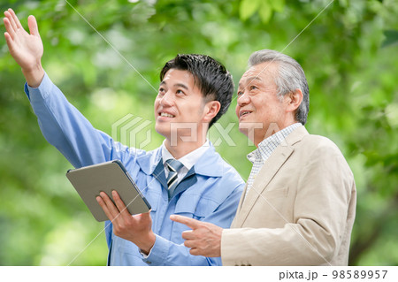 作業服の男性とシニア男性 お任せ