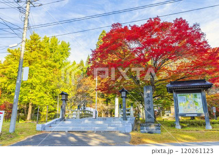 秋の土津神社(はにつじんじゃ) 御神燈と紅葉 福島県猪苗代町