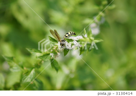 大紋土蜂と薄荷(ハッカ)の花