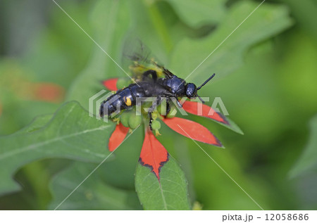 生き物 昆虫 アカスジツチバチ、強面ですがおとなしいハチです
