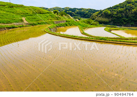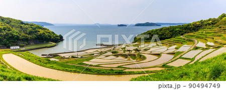 土谷棚田の水張風景 パノラマ 【長崎県松浦市】