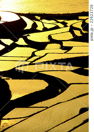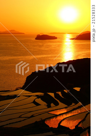 夕陽に染まる美しい土谷棚田 長崎県松浦市