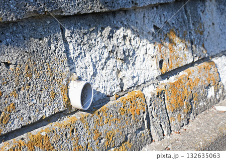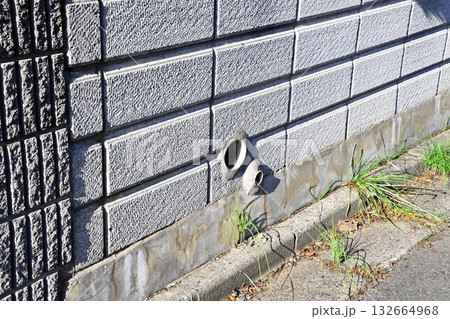 擁壁にある水抜き穴と排水管