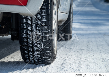 積雪路面を走る車スタッドレスタイヤのイメージ 北海道旭川市