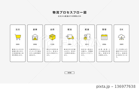 物流プロセスフロー図とアイコンセット(注文から配達までの業務フローと管理・DXの図解)