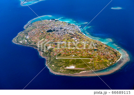 空撮 伊江島と備瀬岬 沖縄 昼間 横