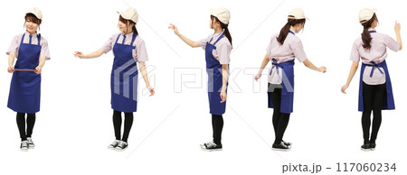 ファミレス店員エプロンの女性の全身人物切り抜き素材