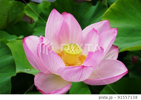 ハスの花と葉の風景(東京都足立区の舎人公園)