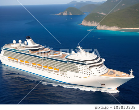 海を渡る豪華客船(クルーズ船)のパノラマ