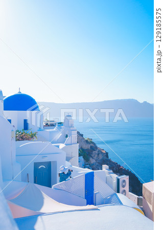 ギリシャのサントリーニ島の美しい朝