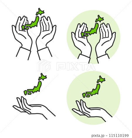 日本列島のアイコンを手のひらで支えて、都道府県を表すシンプルイラスト