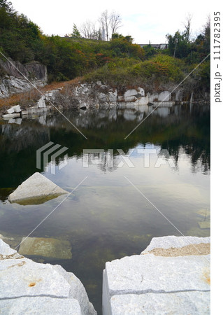 御影石採石跡と湖