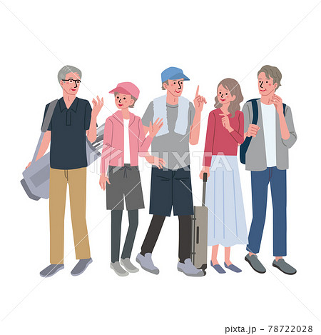 アクティブシニアの男女のイラスト ウォーキング 旅行 ゴルフ