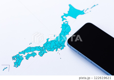 日本列島の地図とスマホ